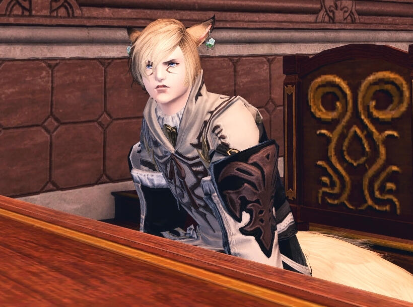 After getting back in contact with his friend, J'takra, L'rah has since started renting a room in the hidden pearl in. The inn also hosts a leve board, and he is watching it in hopes of finding the perfect mission. Potentially also with a handsome, strong adventurer to accompany him, and help get his dream adventure started.